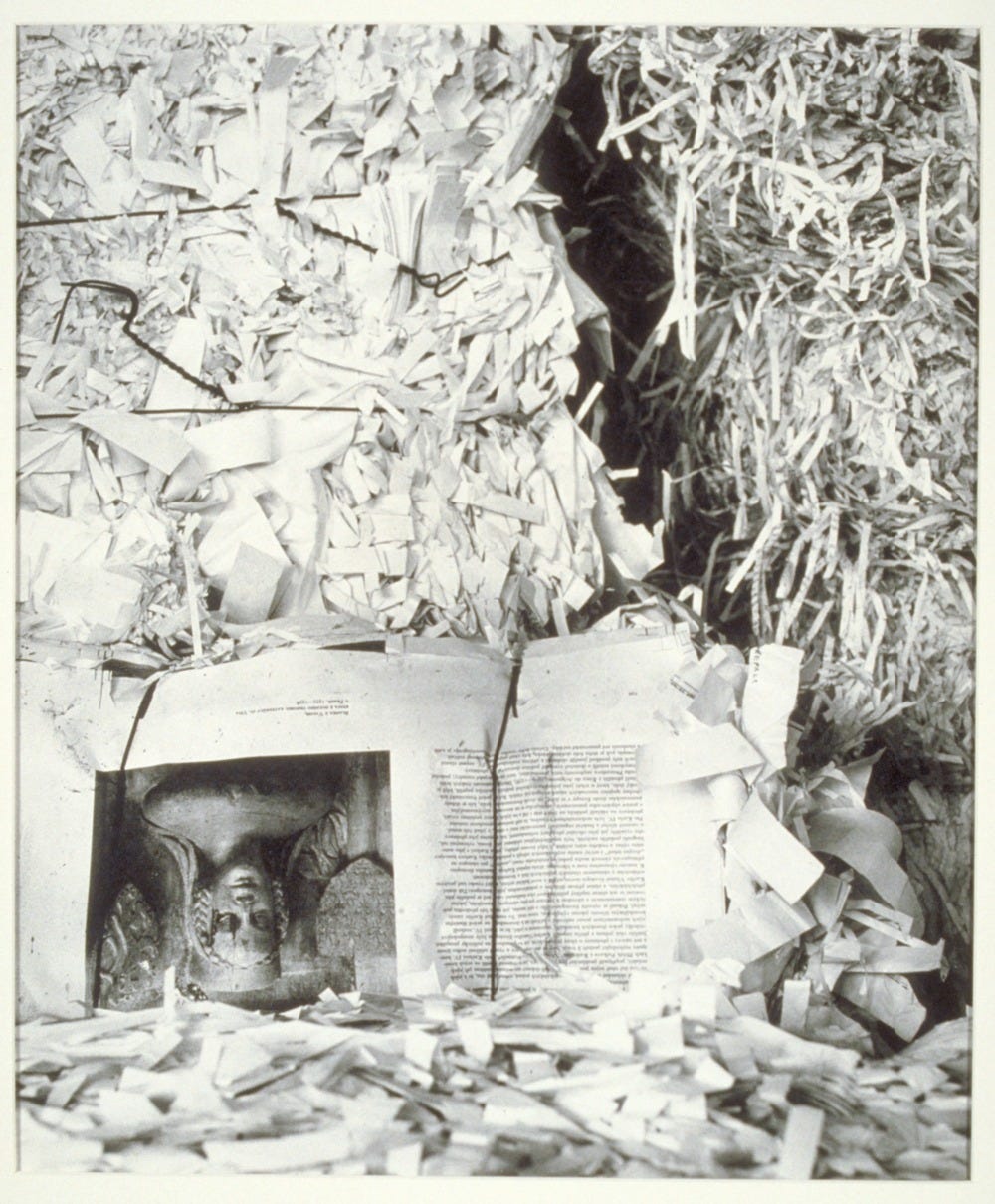 Much of note taking is—that frequently maligned rote—copying. Plunging into the sacred fount of original sources, the notetaker resurfaces with some salvage that, always already claimed by enterprising parties, she resigns herself to duplicating in her notebook for future reference. How much simpler to own an archive of treasured primary texts, cataloged and arranged for optimum utility, to consult as needed. Yet the obstinate notetaker can’t content herself with even the finest libraries. She requires no less than her own concordance to her personal repertoire of literary and artistic works. After even a few short years of such labor the page count alone will daunt all but the most mulish scribblers, to say nothing of the tedious stewardship involved in managing and organizing and shuffling ever growing piles of paperwork. But in this secretarial work there are certain hidden benefits: her painstaking reproductions, line for line, leave their impressions on her memory too, transferred from page to psyche as if by wispy carbon paper. Like the ancient palimpsest or ashen chalkboard, the copyist’s past traces show through, lend depth and history to each refreshed surface. The notetaker fancies herself like the double of Pierre Menard, who alone could restore that author’s first essays at the verbatim composition of Don Quixote—an accomplishment of obvious and immediate value to her.1 Applied to works in the public domain, it’s easy to appreciate the daring of Menard’s feat; but what happens when we begin tilting at copyright windmills? Can the notetaker still claim the title of noble savant, or does she fall to the demoted rank of errant hack?